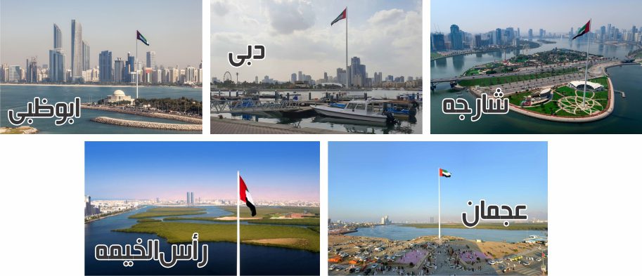 کشور امارت، در شهر های مهم خود یک ابرپرچم برپا کرده است که بزرگترین آن در شهر شارجه(سال 2017) به ابعاد 70 در 35 متر(2405 متر مربع) و بر روی میله ایی به طول 123 قرار گرفته است.