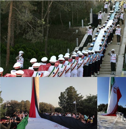 در 12 فروردین (روز جمهوری اسلامی) سال 1391 و در طی دهمین رویداد تکریم پرچم، پرچم ایران در ابعاد 42 در 24 متر با وزنی حدود 300 به اهتزاز در آمد. این پرچم بر میله ایی به طول 150 متر در بوستان های طالقانی (نزدیک پل طبیعت و باغ موزه دفاع مقدس) با حضور سفیران کشور های مختلف نصب شد.
